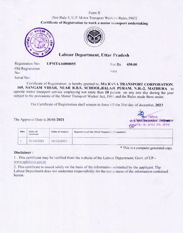 Rana Transport Corporation has been widely known for its superior transport service for the last 25 years. M/s Rana Transport Corporation / RTC Supplies various Bulk Bitumen Products, Sulphur, and Petroleum products from various Refinery to Various Locations in Mathura (U.P), Panipat (HR), Bhatinda (PB), Vadodara (GJ), Mumbai (MH)