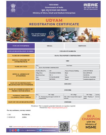 We began our journey in 1996 as Rana Transport Corporation (RTC), a Transport company promoted by Shri Kishan Singh, with 30 years of experience in the Transportation sector. We made our debut with a primary focus on Bitumen Transportation. with the best in time. With the futuristic growth in the field of Transportation, we have emerged as one of the prime Bitumen Transport Companies and have undertaken the commitment to our work has got us several accolades from different organizations. These milestones help us keep working doggedly towards our goals with our core integral values.